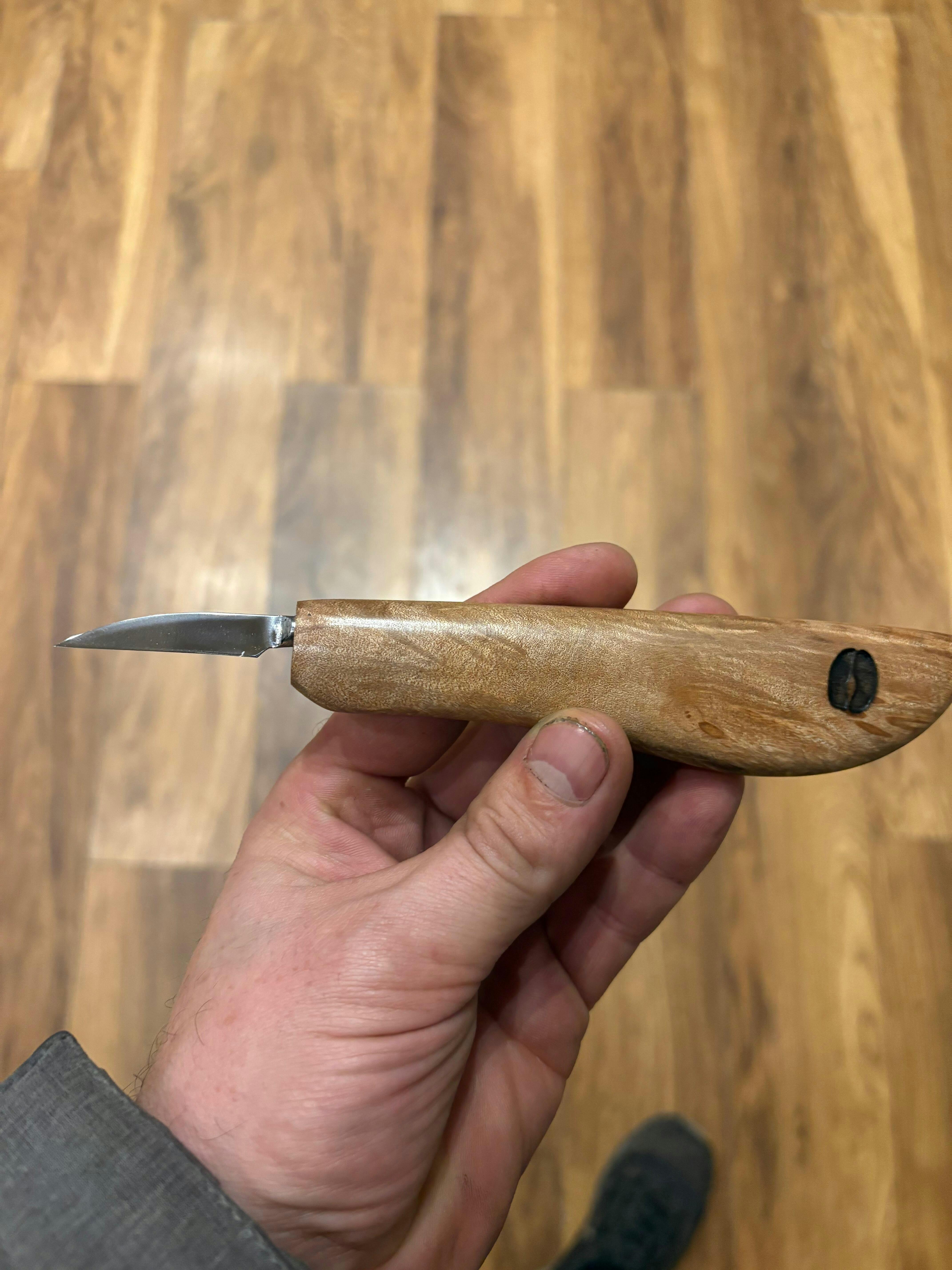 The smaller diameter of the steel on this blades makes for a very sturdy yet great detail knife. We stretched out the length to make it "slim" with a nice long point. This knife will serve you well when carving tight spaces, but also a good all around general carving knife. A good addition to any carvers tool bag.